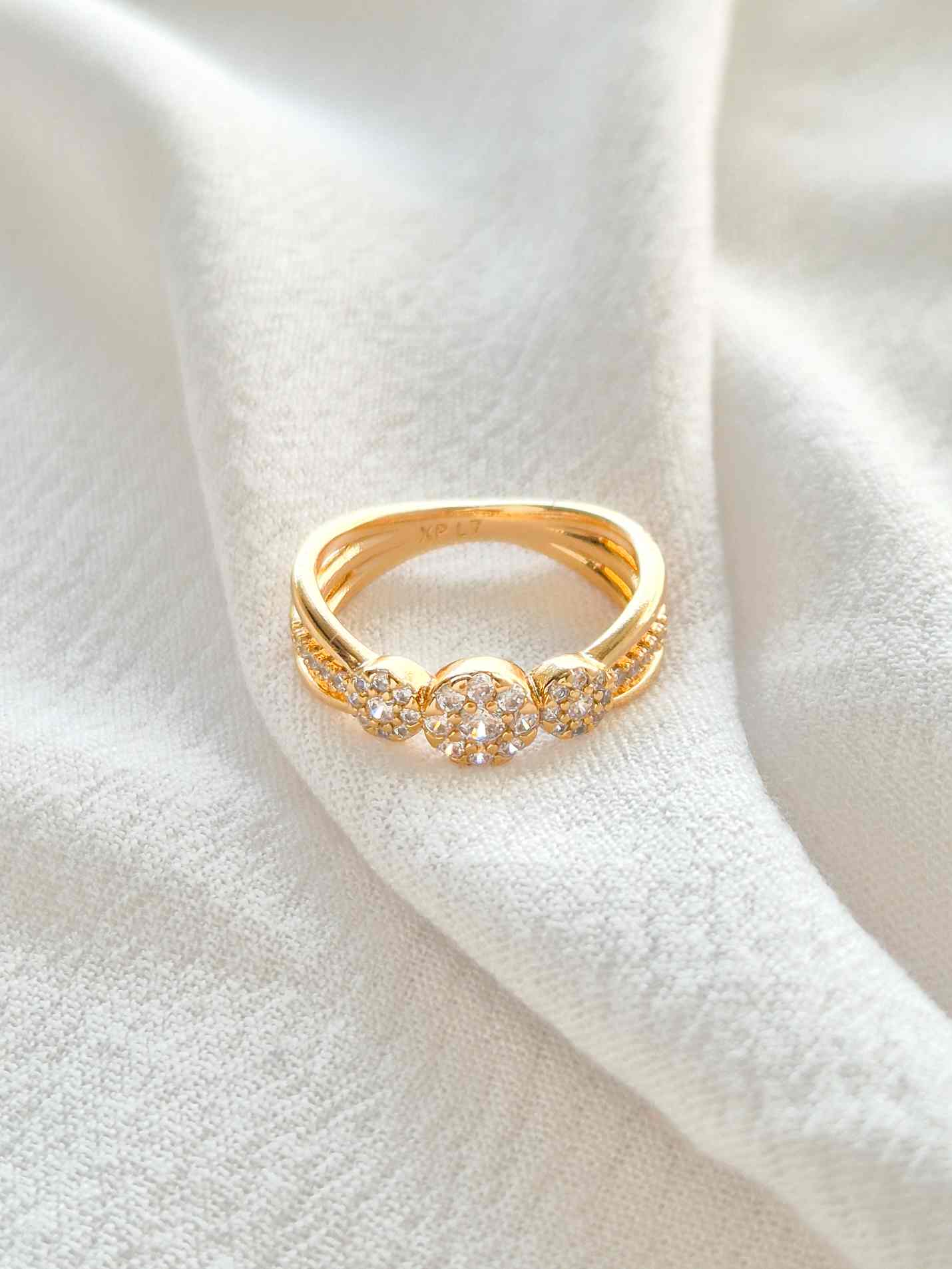 Anillo dorado con detalles de circones.